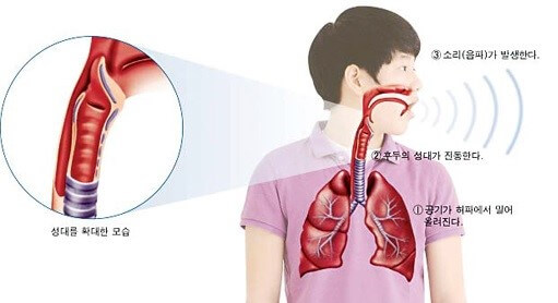 ② 성대는 식도와 기도 사이에 위치한 목구멍, 즉 후두의 중앙에 위치하며, 성대의 긴장과 이완을 통해 다양한 피치와 볼륨의 소리를 생성합니다.