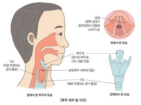 ③ 성대를 포함한 후두는 크게 3개 부분으로 나눌 수 있습니다.