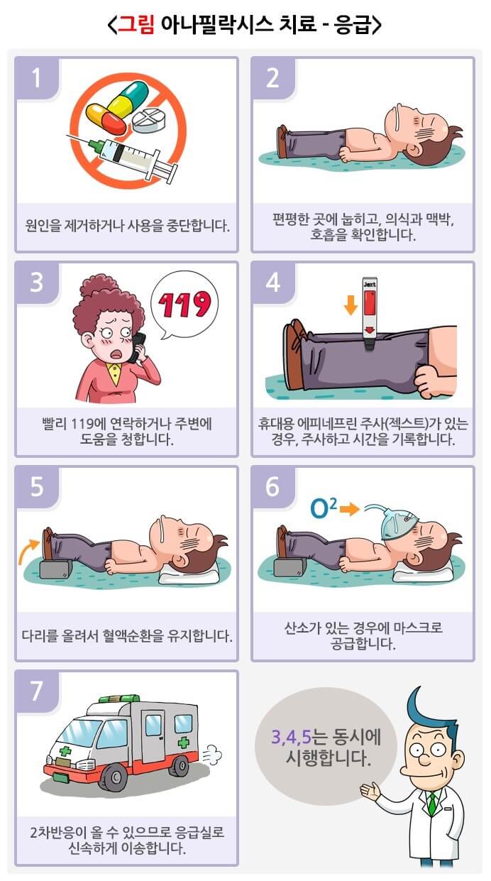아나필락시스의 치료에 가장 중요한 것은 증상을 보고 아나필락시스를 빨리 알아차리는 것입니다.