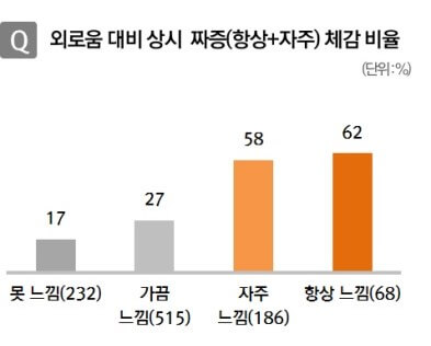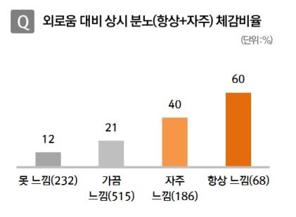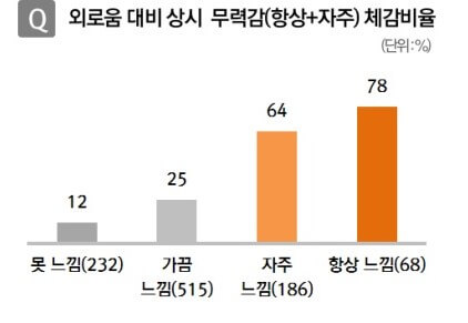 대한민국 국민들의 외로움에 대한 조사 결과를 인용하여 정리했습니다.