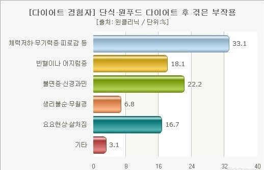 한 사람이 섭취하는 열량과 소비하는 열량이 같다면 체중은 유지되고, 소비하는 열량이 더 많을 때 체중이 감소하게 되는 것이지요. 원푸드 다이어트를 (적어도 권고되는 대로) 하게 되면, 섭취하게 되는 에너지가 극도로 줄어들게 됩니다. 보통 60kg의 성인에게 권고되는 일일 섭취 에너지가 2000Kcal 내외인데 원푸드 다이어트의 경우 하루 섭취에너지가 1200Kcal 내외인 경우가 많으므로 당연히 체중이 줄어들 수밖에 없습니다.