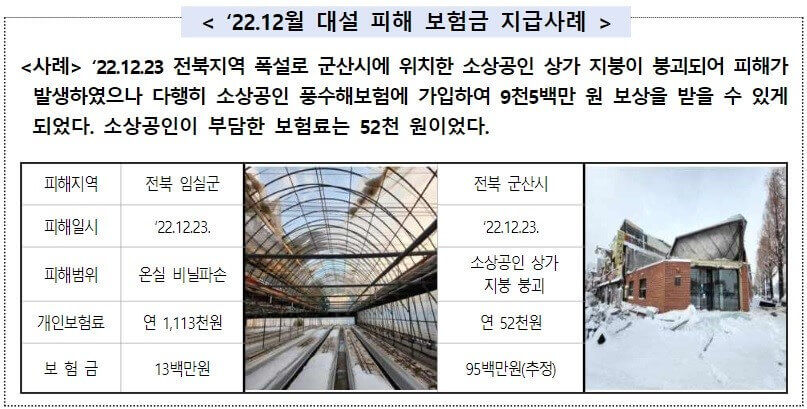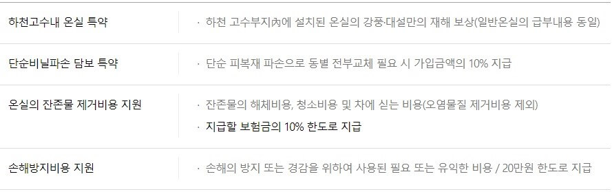 ○ (보험목적물) 주택(동산 포함), 온실(비닐하우스 포함), 상가·공장(소상공인)