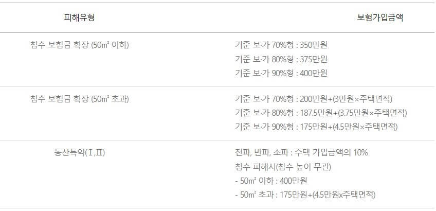 ▷ 최대 5천만 원까지 지원 풍수해보험 · 보험가입 금액 내 *위에 명시된 수치는 복구비 기준액 대비 비율입니다.