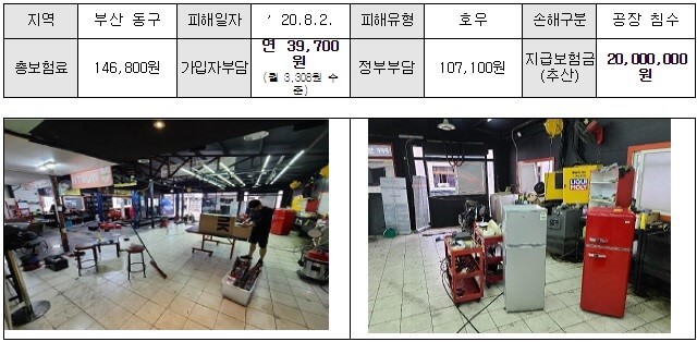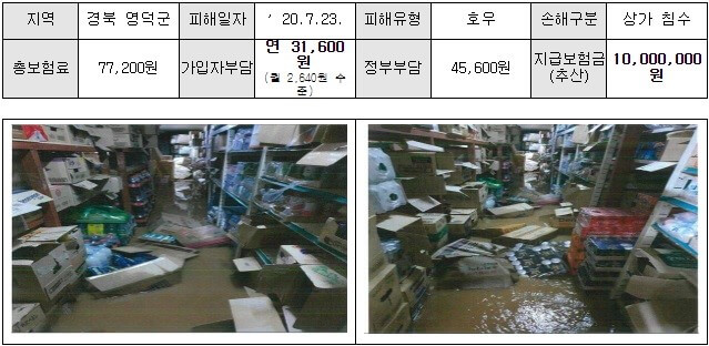 (복구비 기준액 : 재난구호 및 재난복구비용 부담기준 등에 관한 규정 또는 풍수해보험 기초서류에 고시하는 복구 단가입니다.)