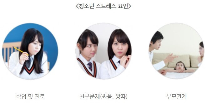 이러한 불안정한 심리상태는 결국 스트레스가 되고, 스트레스의 정도가 심해지면 우울증을 비롯한 다양한 정신과적 질환으로 나타납니다. 따라서 청소년들이 갖는 스트레스를 성장 과정에서 누구나 겪게 되고 자연스럽게 해결되는 상황이 아닌, 적극적인 개입이 필요한 문제로 인식될 필요가 있습니다. 청소년들에게 나타나는 스트레스 문제를 해결하기 위해서는 스트레스를 유발하는 원인부터 정확히 파악하는 것이 중요합니다.