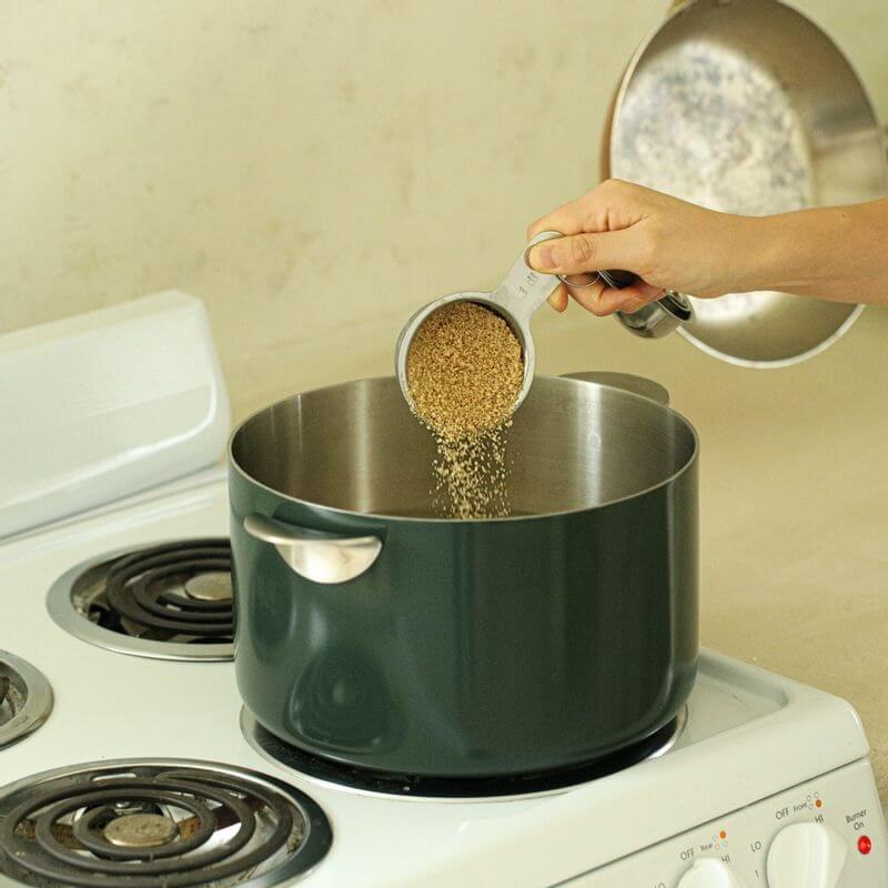 냄비에 물을 끓인 후 설탕을 넣어 녹입니다.