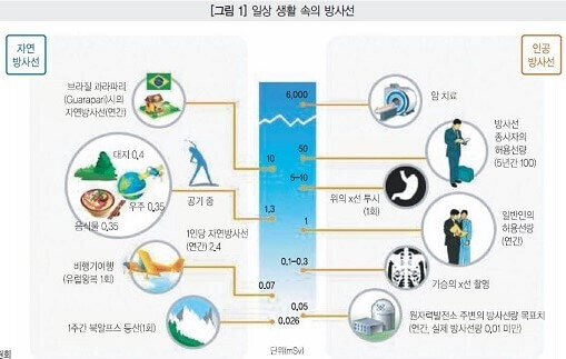 한국 평균 3 mSv vs 일본 평균 2.4 mSv