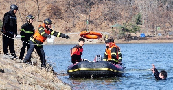 There is no business in the water, and no matter how strong an athlete is, he can't last long if he falls into the water. It is considered to be 8 to 10 minutes at the longest after the accident. The maximum time a drowning person can hold before sinking to the surface is about 3 to 5 minutes. And it's about four minutes of golden time that applies after you sink under the water and stop breathing. If you take out the sedentary drowning immediately within a minute and perform resuscitation, you'll survive with a significantly higher probability of 97%. However, it is not easy to rescue the drowning man in less than a minute. So, you must find tools around you that the drowning man can grab, such as ropes and tubes. Most people who fall into the water are severely soaked. Therefore, you should spit out enough water before performing artificial respiration. The method of spitting out water is to raise one knee and press the back strongly with your hand against the opponent's abdomen. Currently, don't forget to open the other person's mouth and take out your tongue.