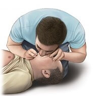 The simplest and surest method of artificial respiration is the oral cavity method. As the name suggests, you put the rescuer's mouth into the opponent's mouth and breathe in. Breathe in the first 10 or so quickly, then based on the number of breaths that fit the other person's age. Of course, in order to perform oral-to-oral ventilation, the patient's airway must be opened, and the neck must be raised with the face and chest lying upright. In other words, if you tilt your head back a little, your neck goes up and your airway is secured. When the airway opens, turn your head to remove foreign substances from your mouth and perform artificial respiration.