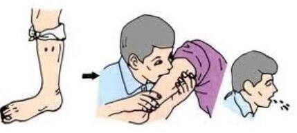 When bitten by a poisonous snake such as a salsa, you should first tie the side close to the heart with a handkerchief and twist the branches to stop bleeding. And you should immediately suck the poison from the wound with your mouth. However, if there is a cavity, wound, or inflammation in the rescuer's mouth, there is a way to cut the wound into a cross shape with a knife and press the surrounding area to remove the poison. When stung by a poison moth or jellyfish, you can stop bleeding and release toxins in the same way.